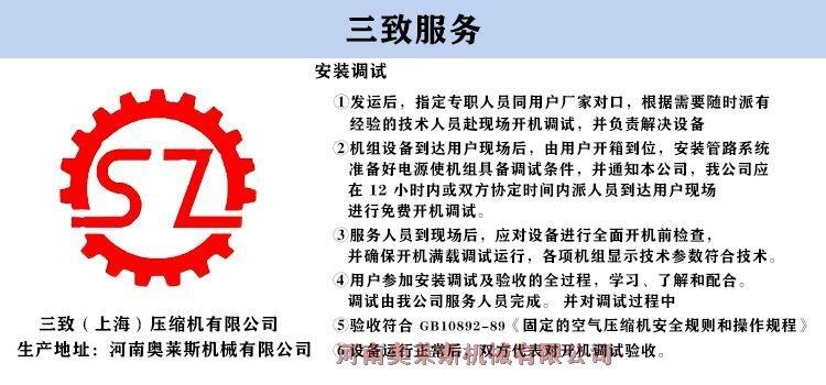 安徽省含山县三致固定空压机SZ08A空压机售后维修保养