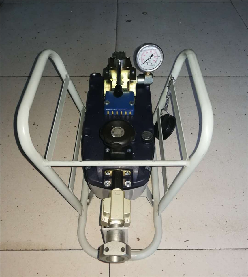 主要参数: ①工作压力:75Mpa; ②气源压力:0.5~0.8Mpa; ③额定流量:0.5L/min; ④油箱容量:2.4L; ⑤换向方式:手动。