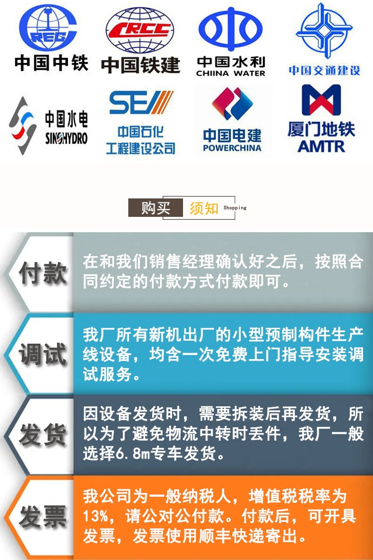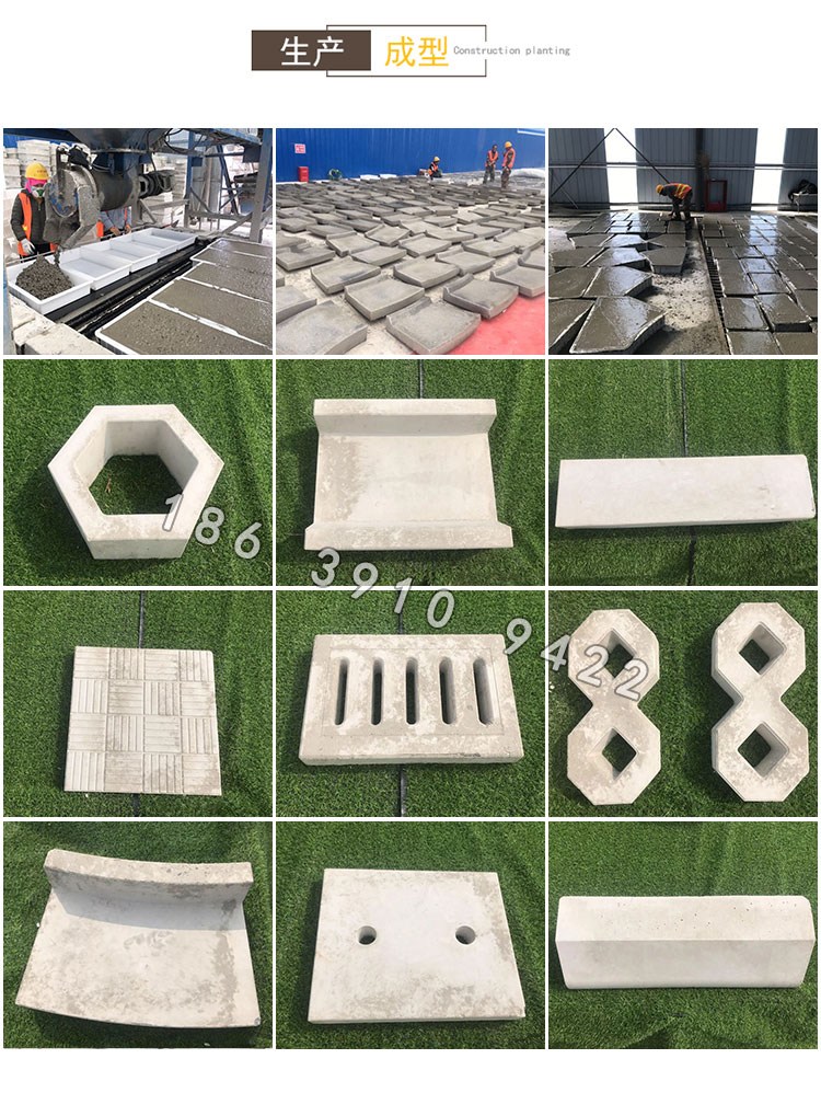 混凝土小预制件生产机械,该系列产品有定制型与型种两种主要机型,可与搅拌站、不同型号的模具组成小预制件生产线,生产空心六角棱块,实心的边沟盖板,电缆槽,涵洞的排水沟盖板等等,适用于各种路桥工程、高速标段,及预制构件厂。小型预制构件生产线 骨架拱圈预制设备 混凝土预制块生产设备