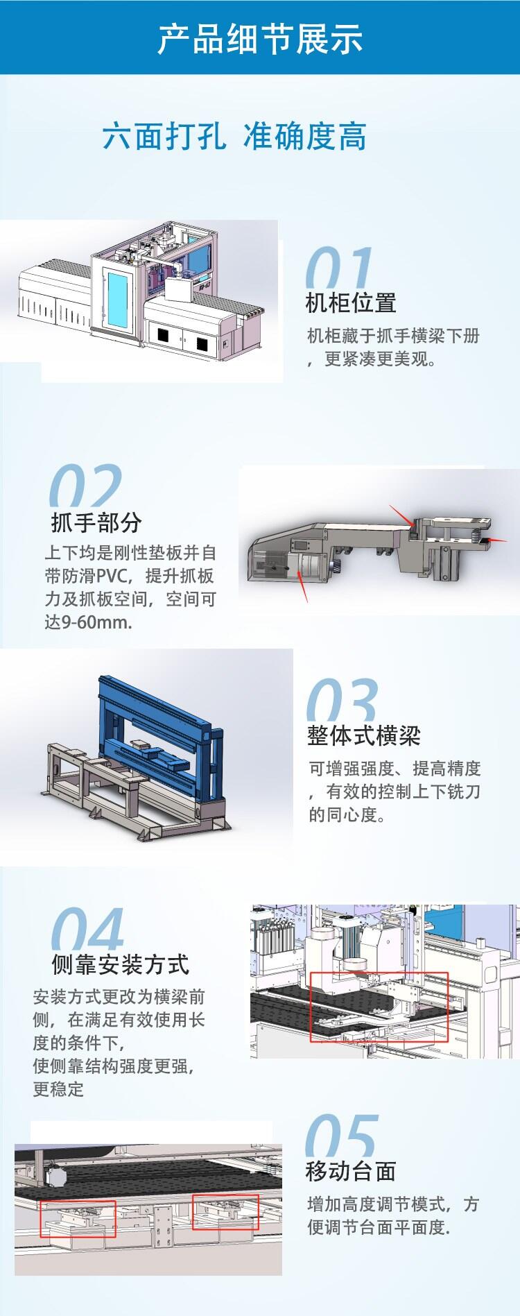 快克数控六面钻是一款可以六面打孔,双面开槽的打孔利器,有双钻包和三钻包的,一般在数控开料机下完料,封边机封完边之后统一在进行打孔,工作效率较高,相对于侧孔机+开料机配合效率高的多。