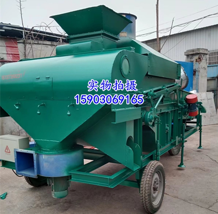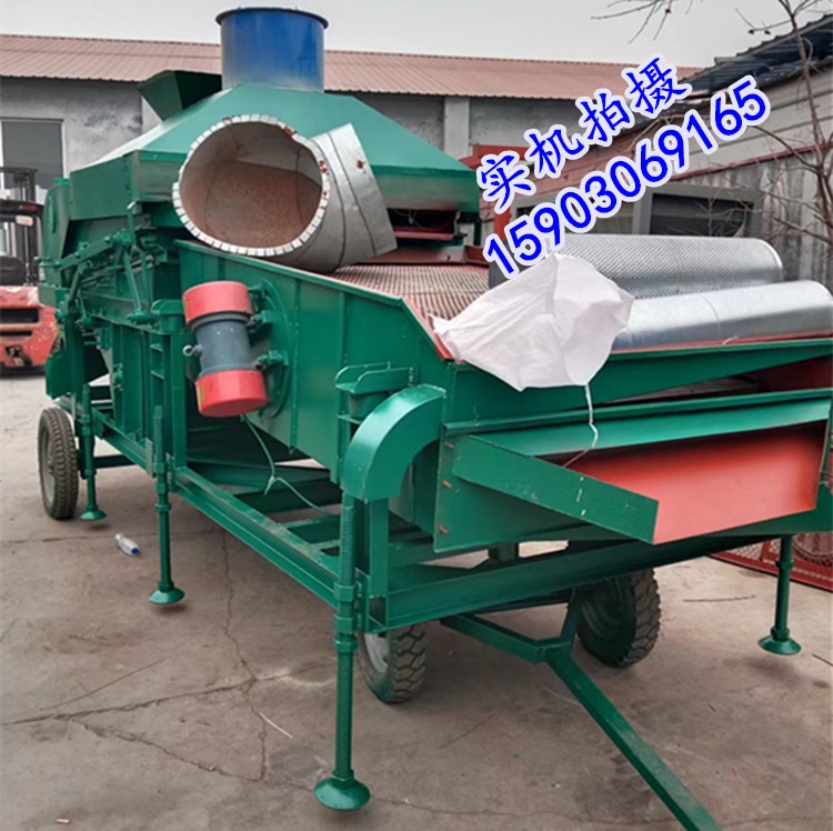 每小时20吨左右大型玉米筛选机 粮食谷物清杂除杂过筛机是谷物收获后不可缺少的的环节,收获后的谷粒中不仅包含饱满和成熟的种子,而且还有机械损伤、破碎和不成熟的谷粒。此外还包含许多杂质,。因此无论留作种子或其他用途,均需将收获后的谷粒进行清选才能满足要求。配套的有软管输送机 铁管绞龙等 该型清粮机,抽风式除尘装置,主要功能是清理皮屑类、尘土类杂质,其次是2层-3层筛网,一层主要以清理壳、二层杆等其他较大杂质,三层筛网是出净粮的,尘土类粮食,会从筛网的缝隙落入箱底,排至杂质出料口,电压380v精选度95%,大豆98%。型比较适合大型该清理筛外形坚固,维修方便,生产效率高,工作噪音低 用途:该机主要用于小麦,水稻,玉米,大豆,棉种,茶花等作物清粮、选种,分级,是一机多用的经济型清粮机结构:本机由机架及运输轮,传动部分,主风机、重力分离台、吸风机、吸风道、筛箱等组成,移动灵活,更换筛板方便、性能良好等特点