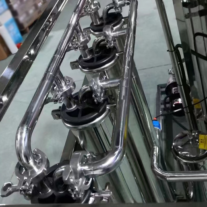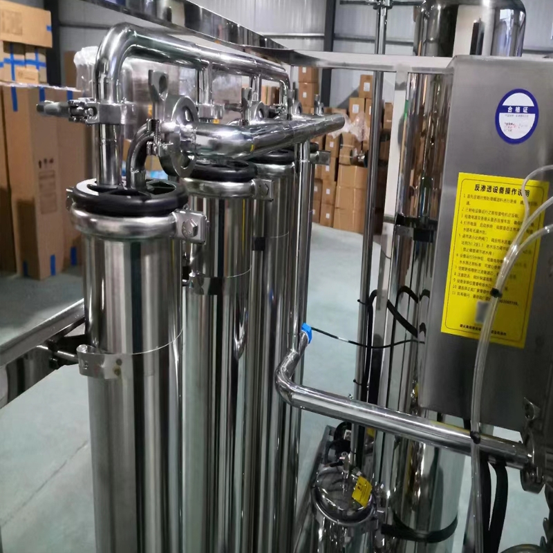 1、五级过滤系统,PP棉、石英砂、活性炭、超滤(保安过滤器)、RO反渗透,原水经过上述工序水处理;