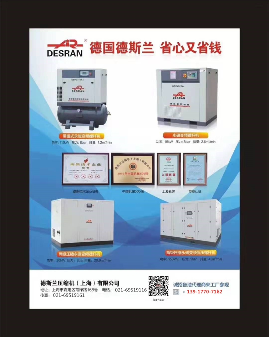 德斯兰螺杆专用油:德斯兰委托道达尔研制的螺杆专用油,也叫螺杆专用冷却液,此种油品都是全合成油,大大减少了油品由于高温而氧化。全合成油作用:降温、降噪、降震、润滑、密封、冷却、卸负荷。