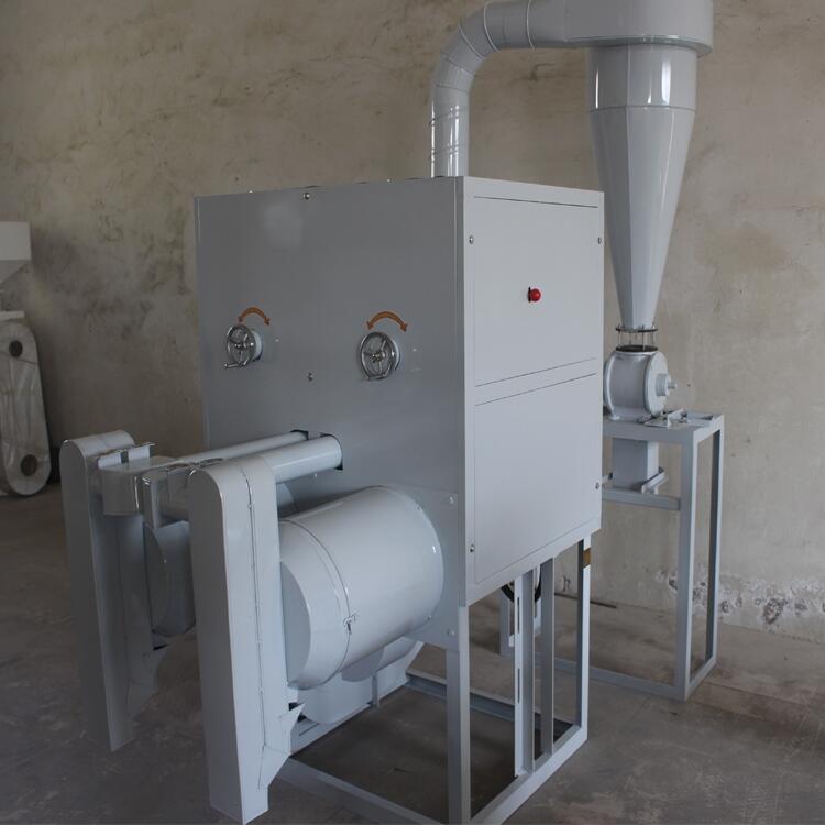 豌豆整粒脱皮机,采用研磨工艺,由进料斗经流量调节机构进人碾白室后,按一定线速旋转的金刚砂砂辊表面锐利的沙粒,碾削绿豆皮层,并使豆粒与豆粒豆粒和米筛相互摩擦,使其开糙及脱壳,同时,通过风网系统吸风作用,迫使糠粉脱离豆粒,排出筛孔。