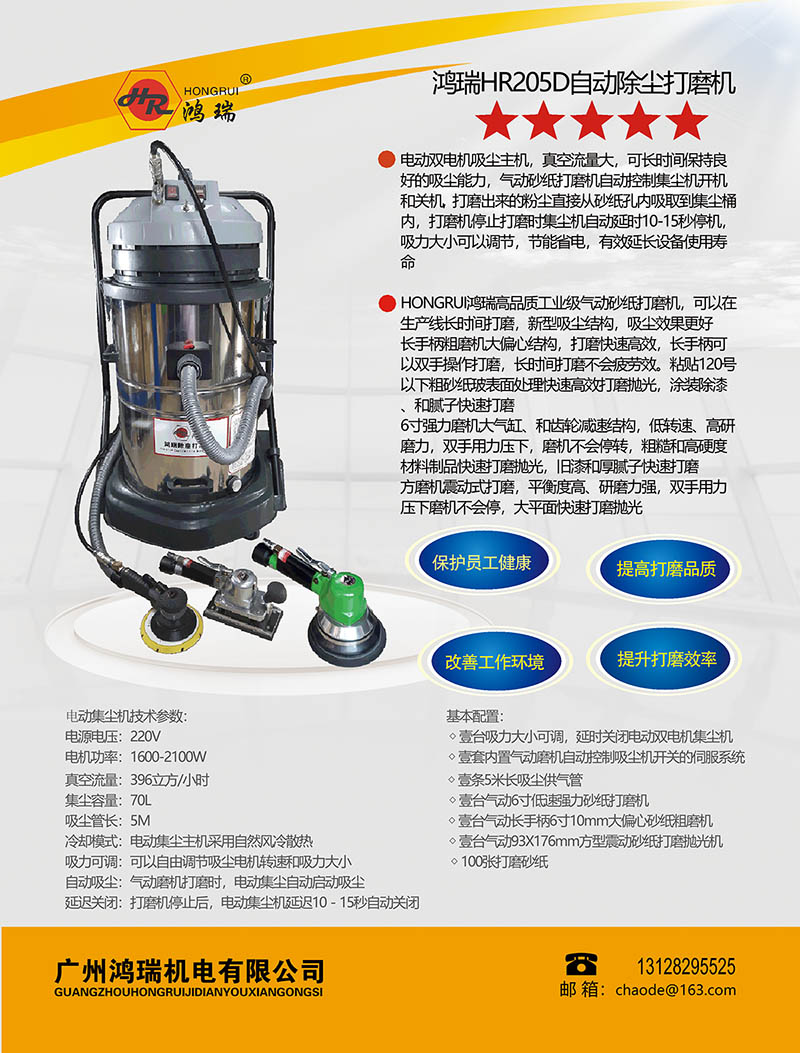 HONGRUI台湾鸿瑞HR205D型手拿打磨机除尘设备