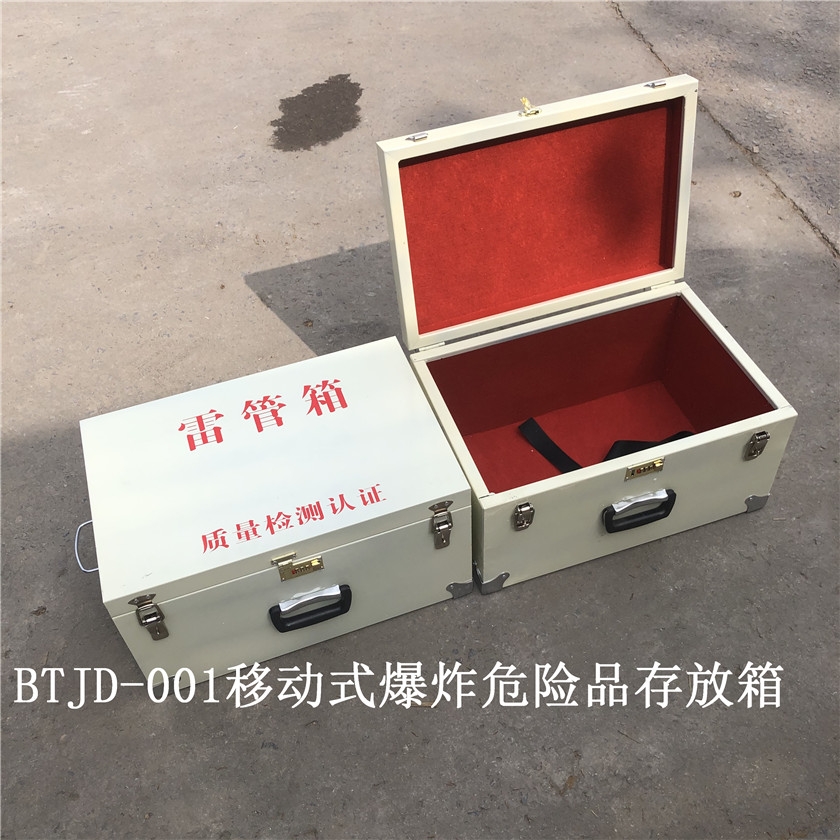 爆炸危险品存放箱(炸药箱、雷管箱)--是山东邦泰集团生产的一款专门放置导爆管,电雷管,炸药等爆破器材的保管箱。爆炸危险品存放箱按照其功能主要分为雷管箱/炸药箱两种,箱体外置1.0mm厚防爆钢板,内置7.0mm防静电,木板和1.0mm防火防震的阻燃毡。存放箱锁具配有三位防盗机械密码锁+两个不锈钢挂锁扣,是标准双锁配置,符合公安检验标准。箱四角带有不锈钢防撞包角,箱体更加坚固,存放箱配有提手可配合背带使之可背可提便于作业员运输保管。