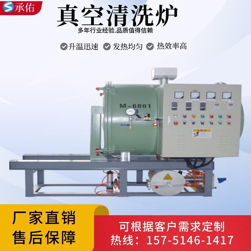 真空炉包括真空清洗炉体、炉盖及所带的废料收集系统、真空系统、密封系统、由微机控制工作的电加热系统、水冷却系统和清洗物装卸系统。