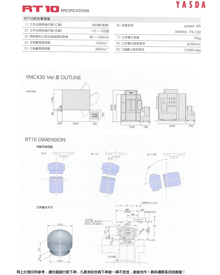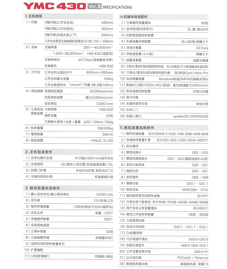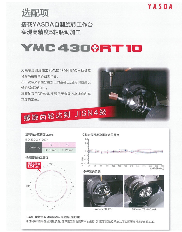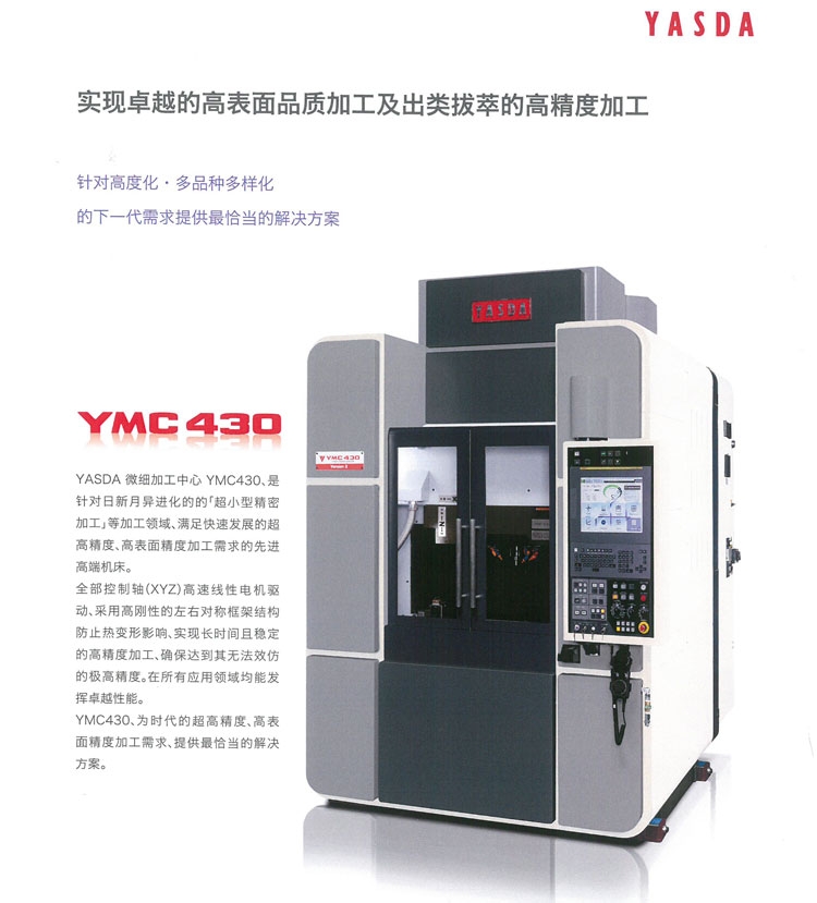 同时合理设置公差,使得加工精度与电脑计算时间之间相互平衡,多做工序,减少空刀时间;毛坯材料硬度高,选择逆铣;毛坯材料硬度低,选择顺铣。粗加工逆铣,精加工顺铣;刀具材料韧性好、硬度低适应粗加工,刀具材料韧性差、硬度高适应精加工。日本安田雅思达机床YASDA加工中心ymc430超精密高精度半导体模具加工中心设备微米级