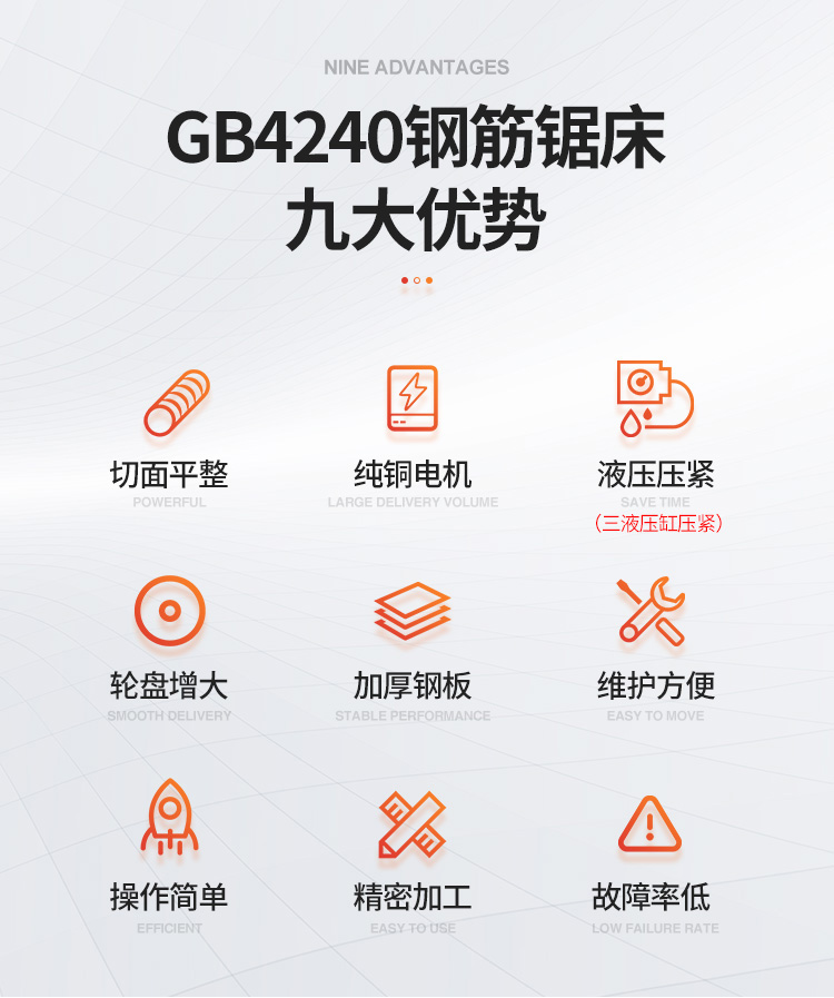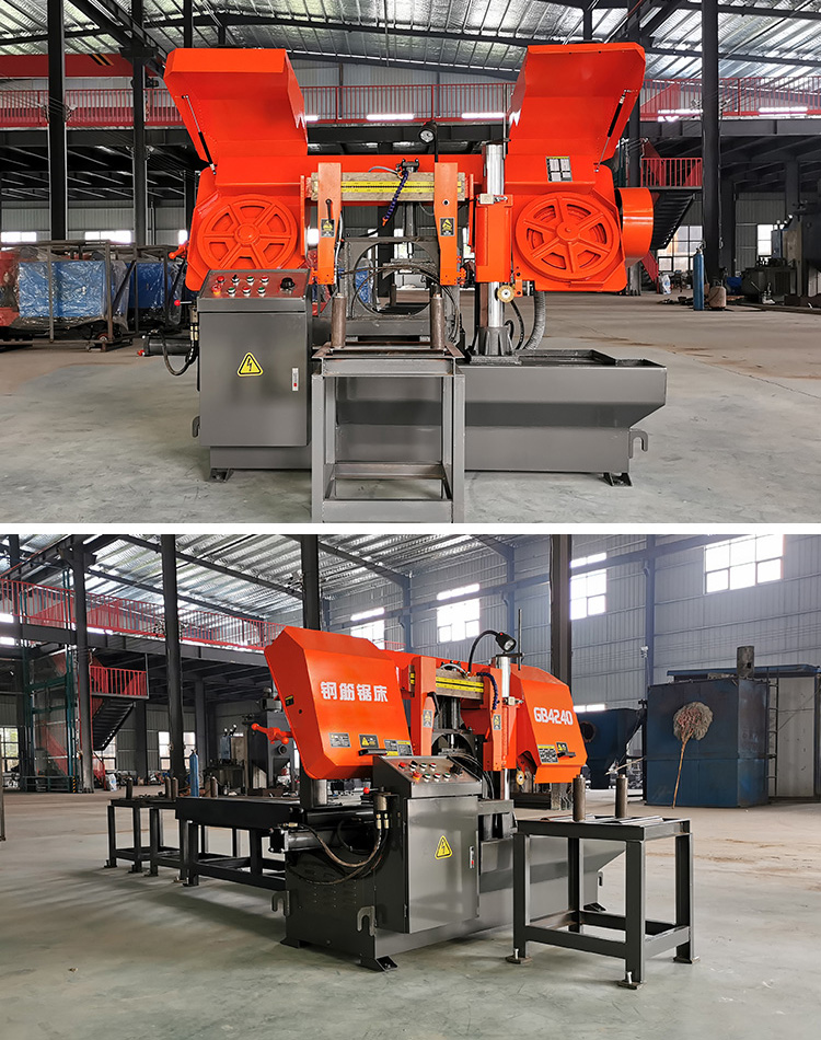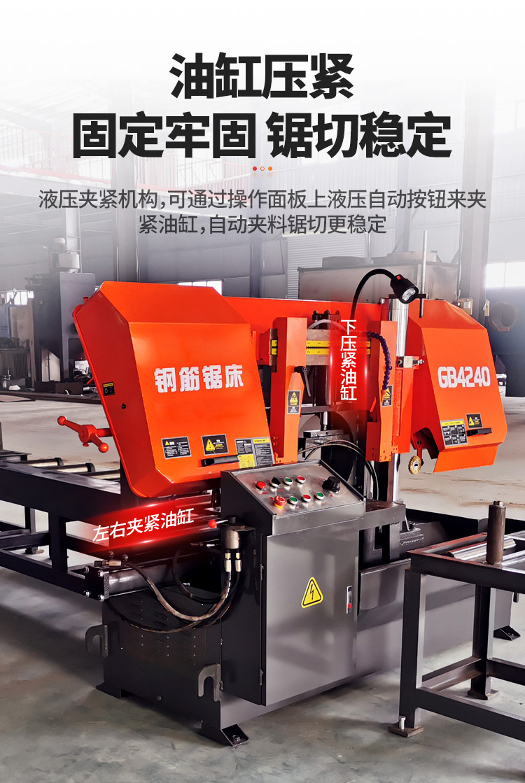 金属带锯床(英文名称Metal band sawing machine,Metal band sawmachine)主要用于锯割碳素结构钢、低合金钢、高 合金刚、特殊合金钢和不锈钢、耐酸钢等各种金属材料。金属带锯床是一种以金属锯条作为切削工具,并用于切割金属 材料的锯切设备,主要用于黑色金属的方料。钢筋带锯床 4240型钢筋专用锯床 半自动圆钢锯床切割机
