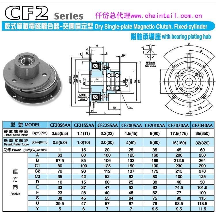 电磁离合器CF22S5AA/CDF2S5AM带轴承座批发。仟岱总代理13710967244,欢迎来电咨询选购。