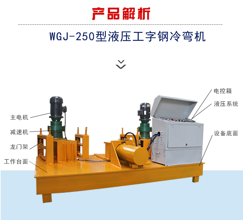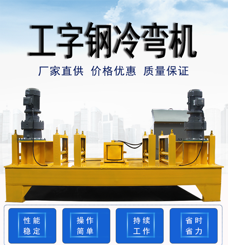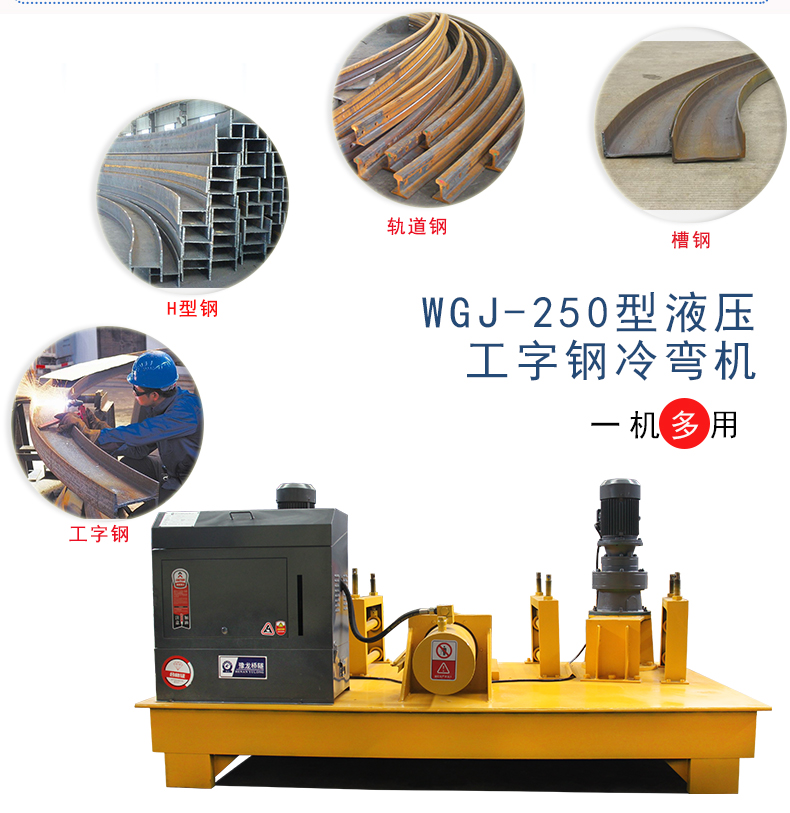 工字钢顶弯机 25号工字钢冷弯机 数控工字钢弯拱机 冷弯机可将各种类型的型材如:槽钢、工字钢、H型钢、扁钢、钢管等曲折成圆形、弧形、法兰、螺旋形等工件。该设备结构合理、操作便当、承载才干强、卷园速度快,具有体积小、能耗低、功率高、无噪音、寿数长、一机多用等许多利益。其代替了原有的钢板下料、对接、校对、车床加工等工艺,并节省了氧气、、劳动力、原资料,是卷制圆环和法兰的一种高、益的卷圆设备。该设备可广泛用于风机、石化、造船、桥梁模板、网架、钢结构修建、大型管道、水工表面等职业,也用于对外加工。