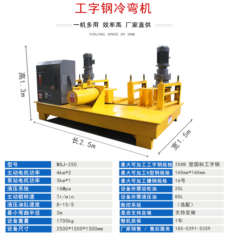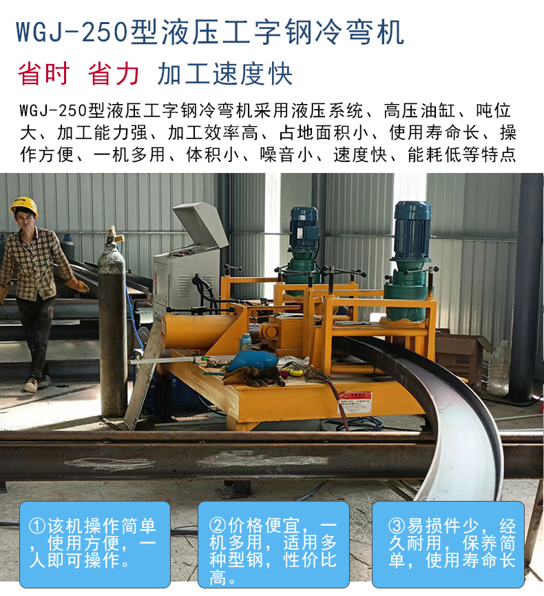 我厂生产的型号齐全、价格优惠、厂家提供一对一售前售后服务。工字钢顶弯机 25号工字钢冷弯机 数控工字钢弯拱机。是型钢拱架弯弧、折弯、冷弯的设备。一机多用,纯铜电机,厂家质保,价格便宜。