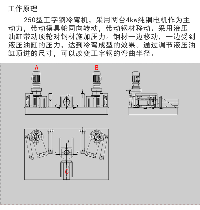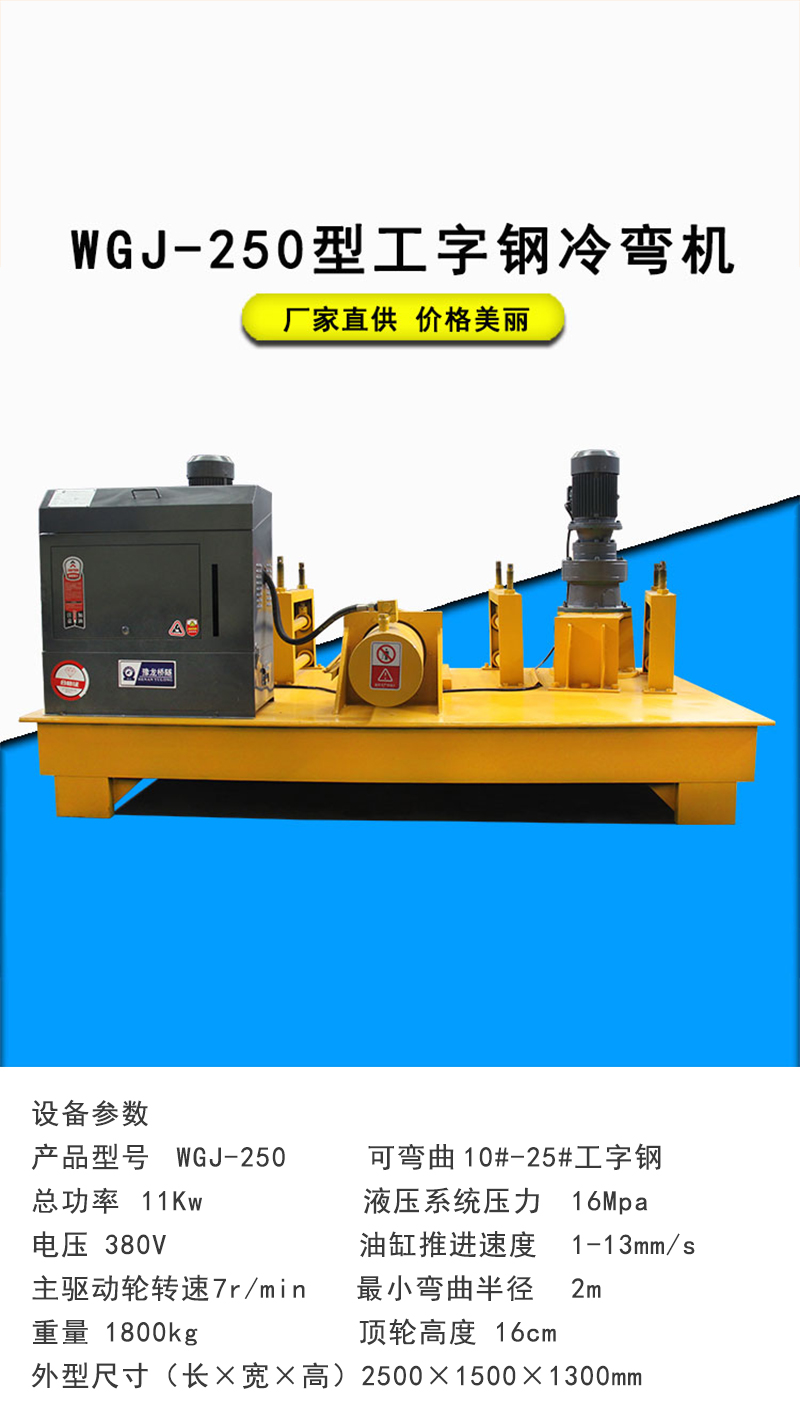 采用大吨位液压油缸,4KW纯铜电机、一体式电控柜等部分组成。整机质保,厂家直供,价格优惠,一机多用。工字钢折弯机 20号工字钢冷弯机 型钢冷弯设备适合工字钢、H型钢、槽钢、角钢等多种钢材冷弯加工。