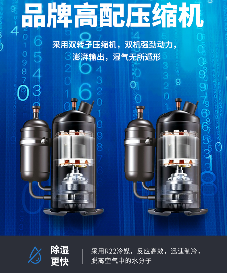 除湿量 | 480升/天 20公斤/小时(30℃-RH80%) | ||