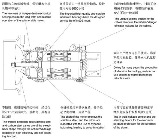 潜水搅拌机适用于各种水处理和工业过程需要固体、固体、液体、气体液体两相或三相混合反应介质。