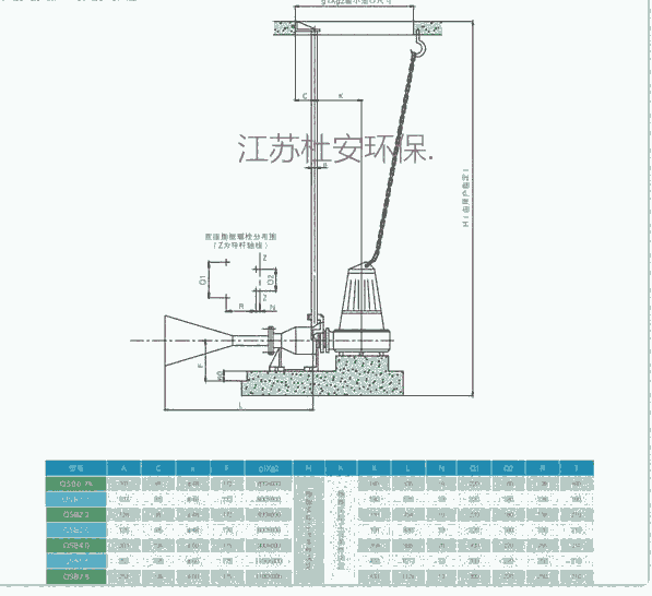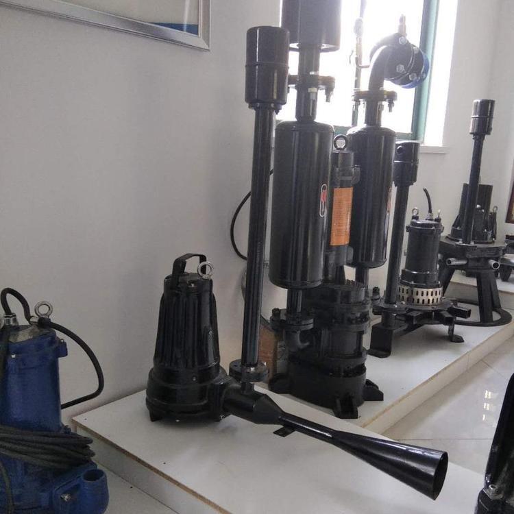 潜水射流曝气机工作原理运行时,水泵叶轮在潜水电机带动下高速旋转,将泥水混合物推入射流器形成射流,在射流周围产生负压区,将空气通过吸气管吸入射流喷嘴负压区,在射流器的喉管内进行气、水、泥充分混合,又通过射流器的扩散管将射流的动能逐步转变成压能后进入散流器。在散流器内,气、水、泥混合物进一步混合,迫使气体继续剪切、粉碎并乳化,保证绝大部分氧充分溶解于水中。同时,在射流流体压力的作用下,射流携带氧分子和微小气泡,从散流器的喷嘴中倾斜向下喷出、扩散,形成对水体和对生化池底部污泥冲击、搅拌后,由池底缓缓上升至水面,微气泡在水中停留时间一般长达30秒以上,使空气中的氧充分被溶解和吸收,提高了氧转移效率和充氧能力。本设备能使泥水与空气在射流器内产生较高的负压和强烈的紊动、搅拌、剪切,促使液膜与气膜高频振荡,使气泡直径大幅度减小,气泡数目增多,增大气泡的比表面积,同时也使气液膜变薄,能较大地降低传质阻力,使氧分子更好地从气相转移到液相。射流在高速前进过程中,在分散器内高速旋转的作用下,具有较高的角速度,使射流具有较强的穿透力,使微小气泡在水中行程远,增强搅拌、推流与增氧能力。适用范围适用于深水曝气、生化池的曝气兼搅拌、污泥曝气兼搅拌、高浓度有机废水处理工艺。