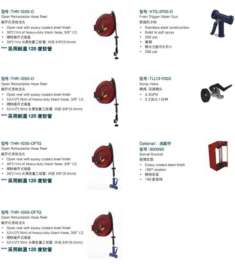 CHG冲地龙头THR-1035-O敞开式11m伸缩式洗地龙头商用厨房洗地枪黑色重工软管