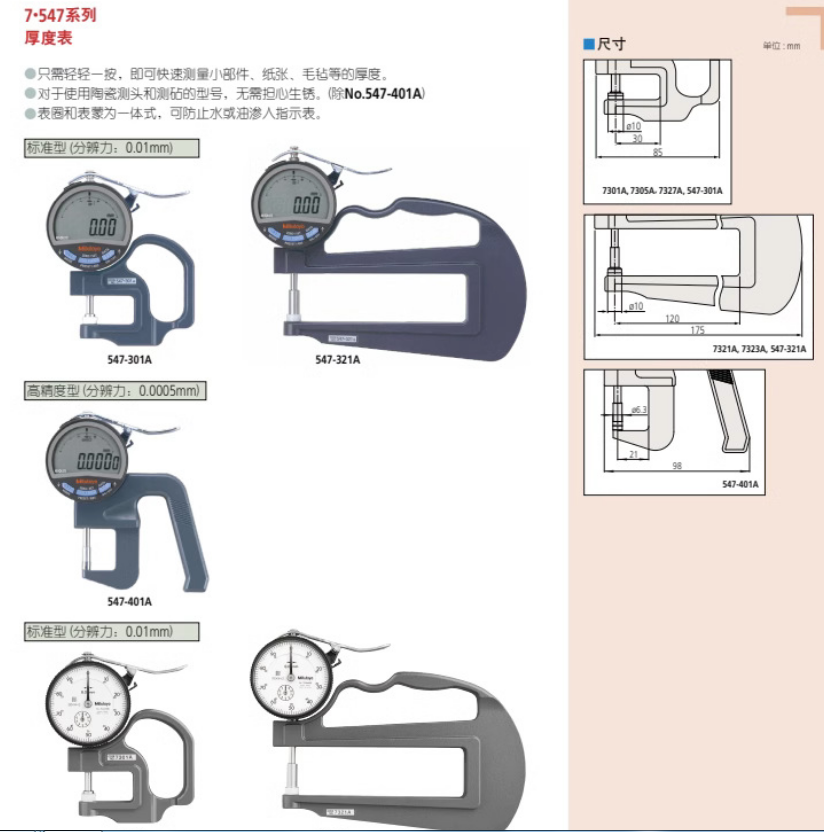 Mitutoyo日本三丰 数显厚度表 547-401A 数显测厚规 厚度计0.001mm