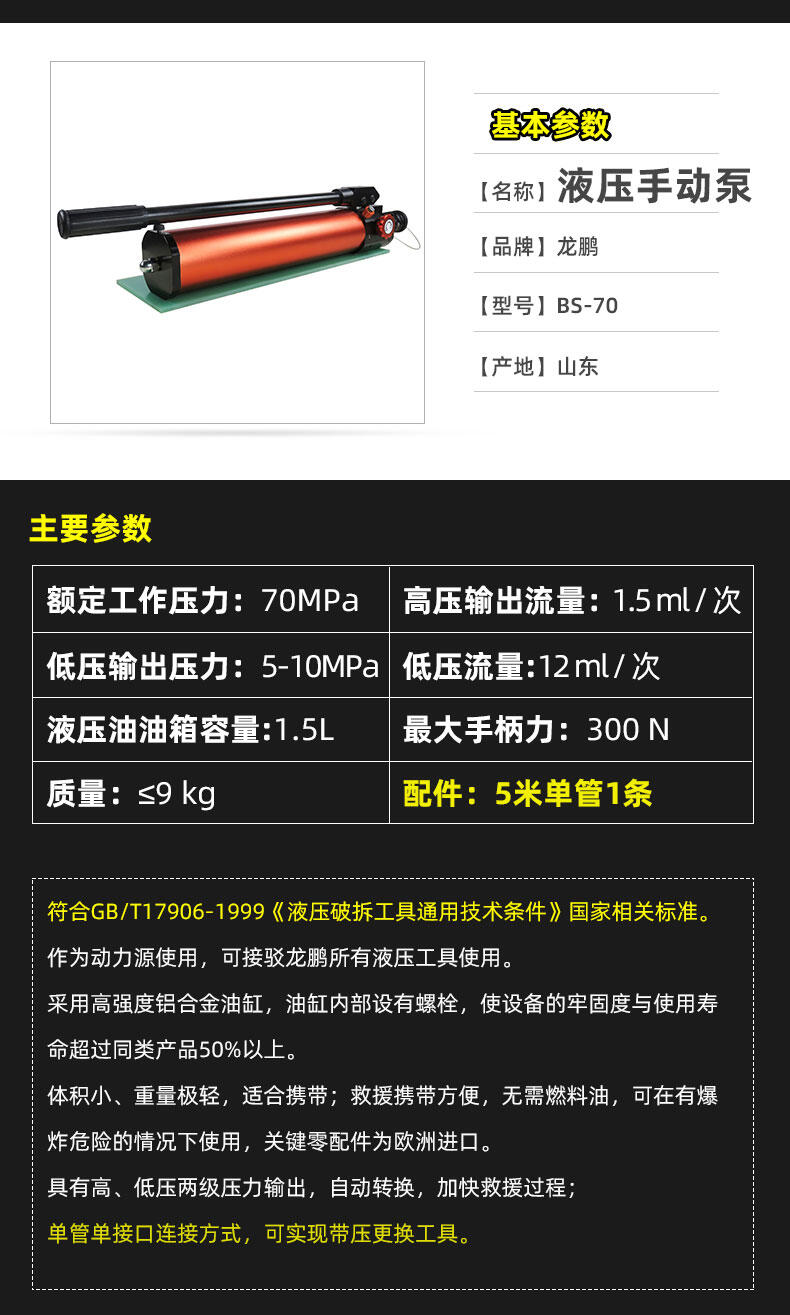 液压破拆工具组BS-70单接口液压手动泵消防动力站