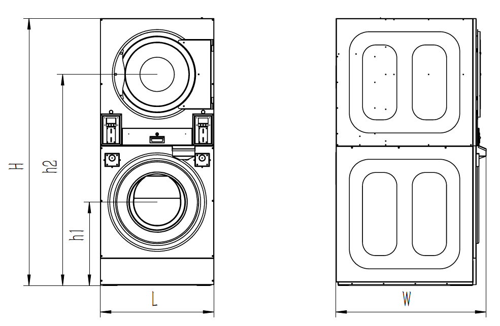 中天伊丽洁SXTH-220G22公斤自助堆叠固定式下洗上烘, 洗脱烘一体机降价促销。