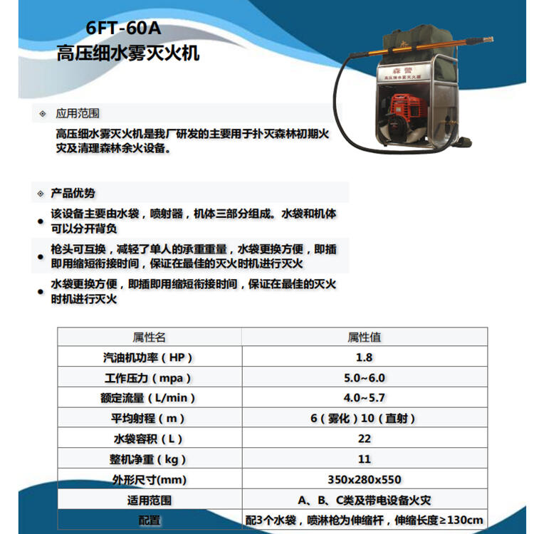 森防高压细水雾灭火机6FT-60A有报告价格不高用料厚道