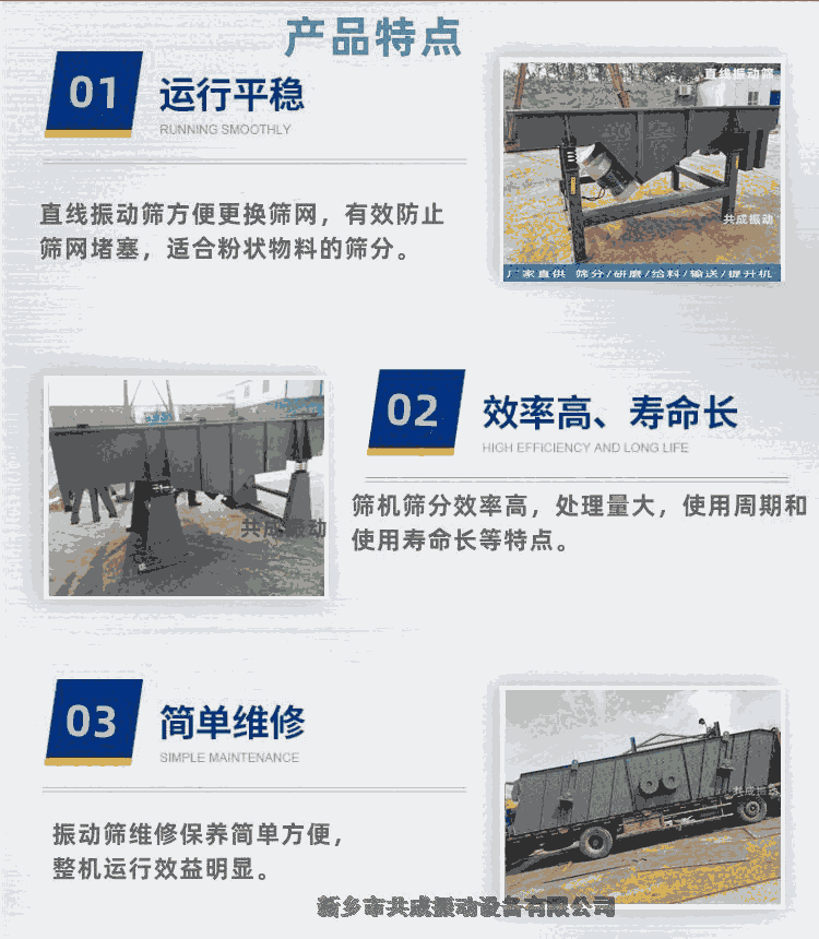 大米筛选直线振动筛特点: