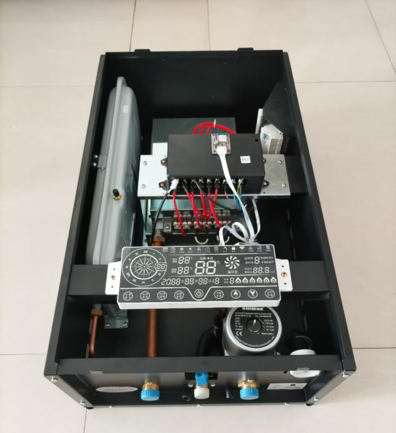 1、该款匠奥电壁挂炉采用板式三维迷宫加热器,内部水路为不锈钢材质,电加热采用6组同程式(可事项6档位功率可调),经铝水浇筑一体成型,水电分离的同时。吸热换热效果好,实现单位面积热负荷小,更加耐用更防热量散失;