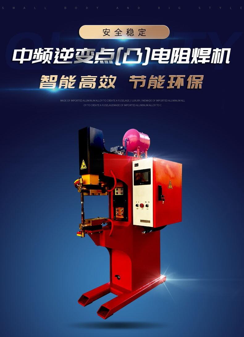 中频逆变点(凸)电阻焊机由于热效率高、焊接变压器小、铁损小,焊接同样的工件时比普通交流点(凸)焊机节能30%以上