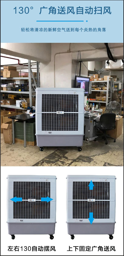 4、130°广角送风自动扫风,轻松将清凉的新鲜空气送到每个炎热的角落