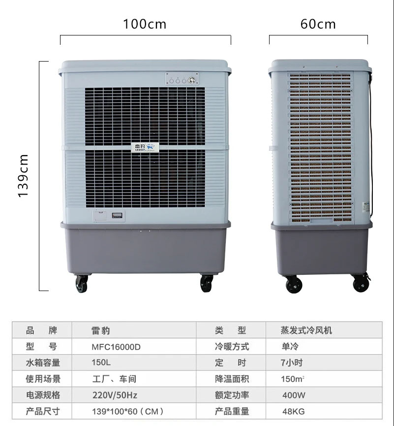 雷豹蒸发式冷风扇MFC16000D移动式冷风机生产厂家