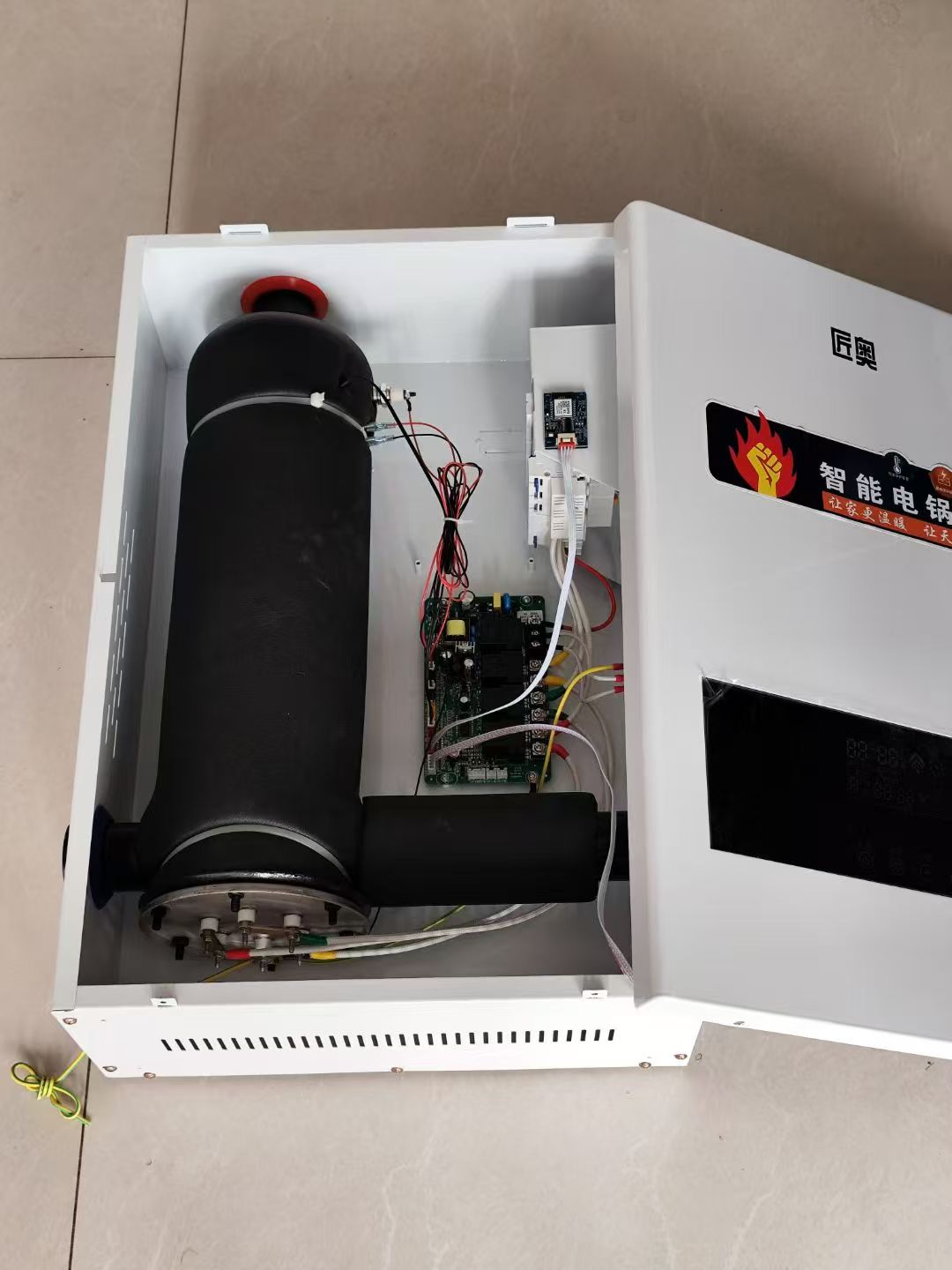 1、该款匠奥电采暖炉采用壁挂式结构,智能控制器三档位调节,智能控制停止加热温度,启动加热温度,水泵运转温度,定时等;