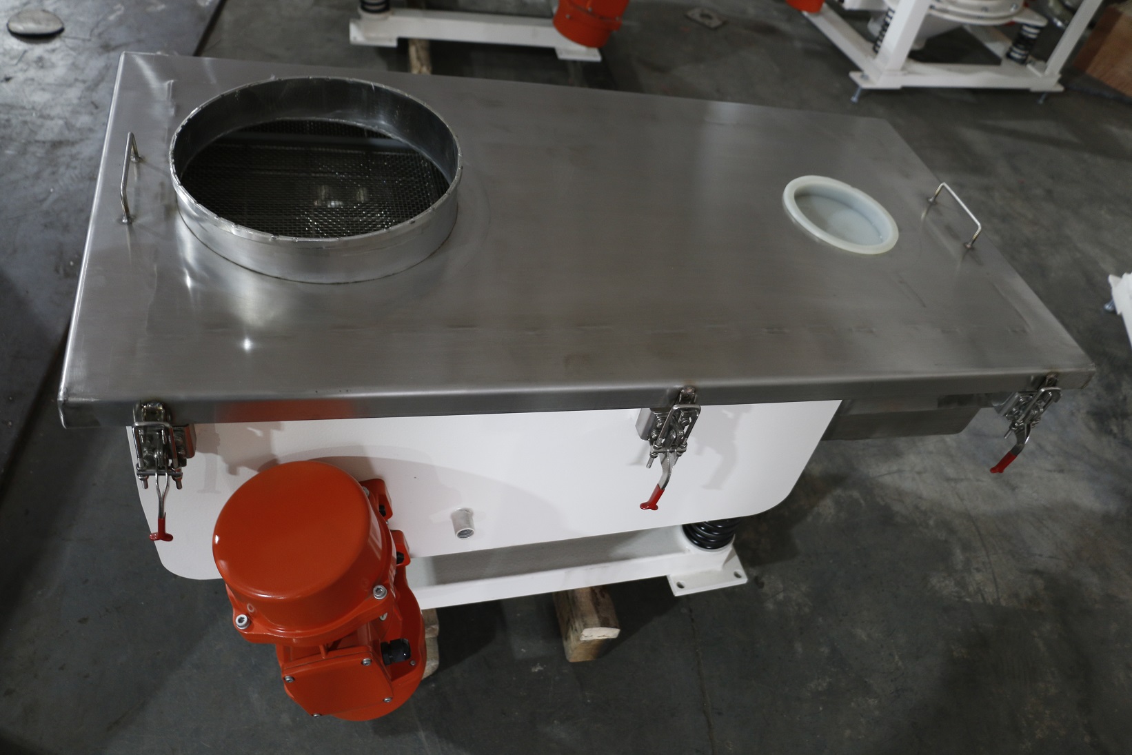 ▲筛网(板)用快速夹具夹紧,方便更换筛网及清理;