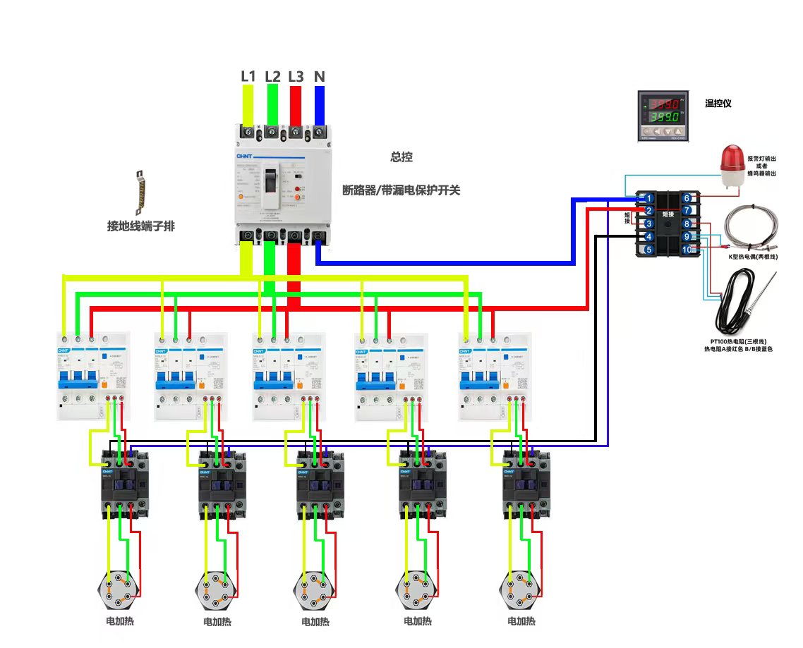 1吨方形不锈钢保温水箱配5组电加热做热水项目可多种控制电路接线