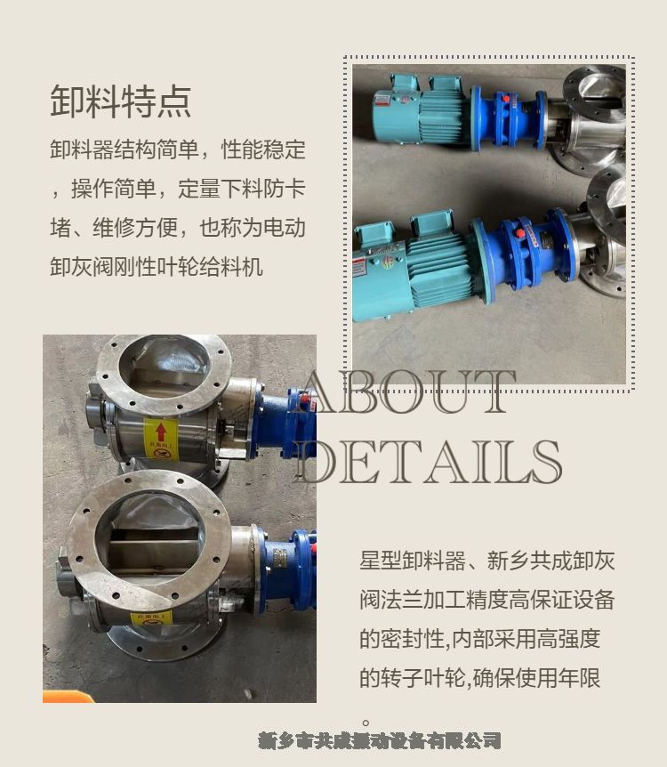 二、当上部料仓的物料靠自重落下充填在叶片之间的空隙中,随叶片的旋转而在下部卸出。因此,星型卸料器可以定量而连续地卸料。