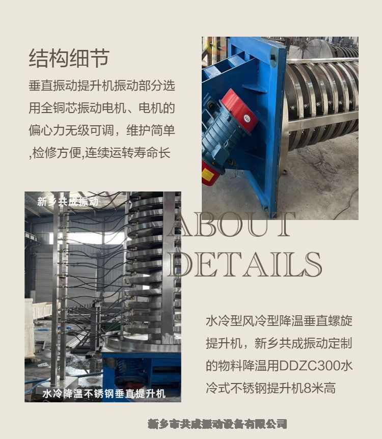 共成 再生颗粒聚丙烯颗粒物料降温风冷水冷垂直振动提升机DZC800 振动输送机 螺旋输送提升机 上振式下振式振动提升机