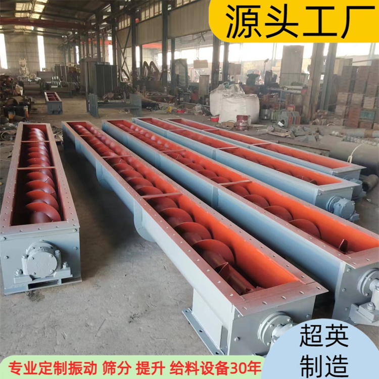 无轴螺旋输送机 污泥电动给料机 螺旋运输机械厂家输送要求能够满足多种物料输送要求,例如干粉料、含湿粉料、高温物料(温度可达200℃)耐腐蚀要求,密闭性要求等等。螺旋输送机特点:在吸收国内外先进的螺旋输送机制造技术的基础上,宏源振动筛分机械公司自行设计的各种规格不锈钢螺旋输送机,其整体刚性好、运转平稳、易对中、密封可靠,不锈钢有轴螺旋机的螺旋轴一般采用两端部滚动轴承支承(滚动轴承采用国内外的产品,运转周期长、装卸方便),对特殊要求者可设置中间悬挂,其悬挂部件中的轴和轴瓦的材料为高耐磨损、耐腐蚀的合金材料,寿命可达一年以上;针对高温型物料,该设备具有热补偿功能。设备传动形式有直联及链传动两种。