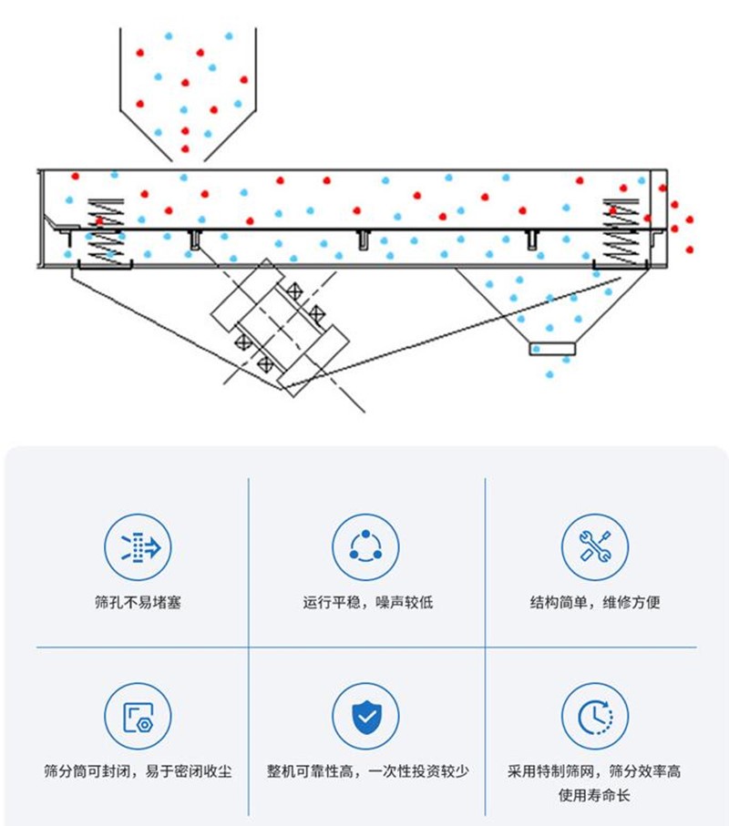 适用于 0.74-10mm、含水小于 7%、无粘性物料的干式物料筛分,广泛应用于磨料磨具原料、化工、塑料、医药、树脂粉、陶瓷原料、冶金、建材、粮食、化肥等行业。