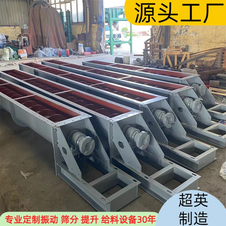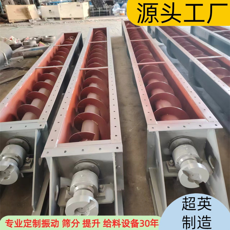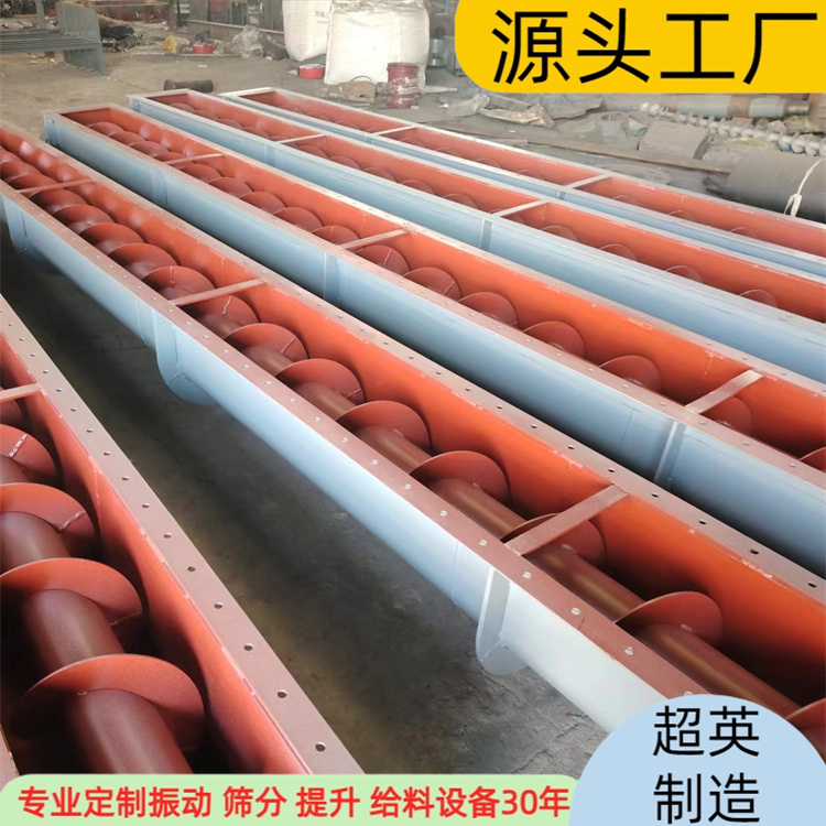 无轴螺旋输送机主要由驱动装置、头部装配、机壳、无轴螺旋体、槽体衬板、进料口、出料口、机盖(需要时)底座等组成。驱动装置:采用摆线针轮轮减速机或轴装式硬齿面齿轮减速机,设计时应尽可能将驱动装置设在出料口端,使螺旋体在运转时处在受拉状态。头部装配有推力轴承,可承受输送物料时产生的轴向力。机壳:机壳为U型或O型,上部加防雨型机盖,材质有不锈钢或碳钢或玻璃钢。无轴螺旋体:材质为不锈钢或碳钢。、