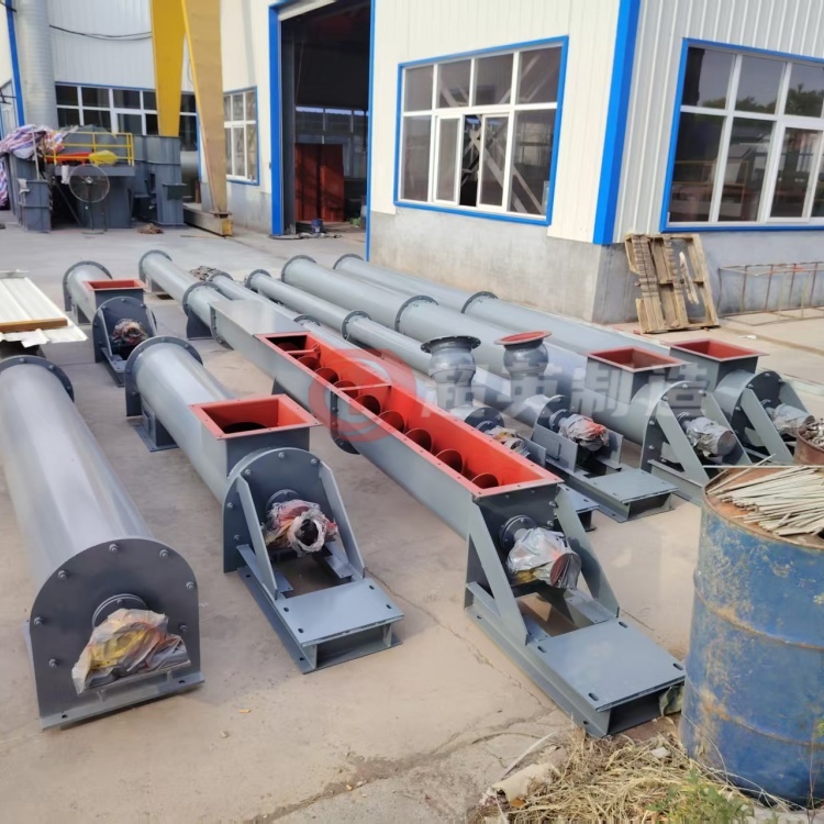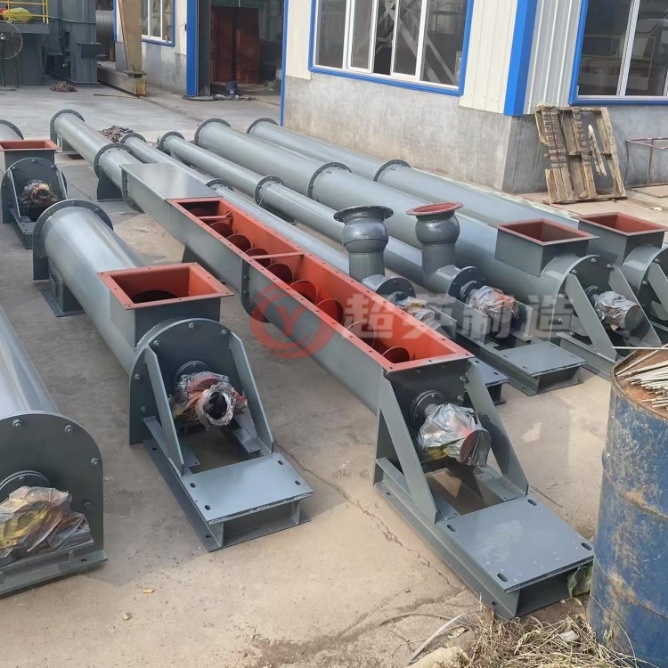 螺旋输送机适用于无粘性的干粉物料和小颗粒物料.(例如:水泥、粉煤灰、石灰、粮等)而无轴螺旋输送机适合输送机由粘性的和易缠绕的物料。(例如:污泥、生物质、垃圾等)螺旋输送机的工作原理是旋转的螺旋叶片将物料推移而进行螺旋输送机输送,使物料不与螺旋输送机叶片一起旋转的力是物料自身重量和螺旋输送机机壳对物料的摩擦阻力。螺旋输送机旋转轴上焊的螺旋叶片,叶片的面型根据输送物料的不同有实体面型、带式面型、叶片面型等型式。螺旋输送机的螺旋轴在物料运动方向的终端有止推轴承以随物料给螺旋的轴向反力,在机长较长时,应加中间吊挂轴承。