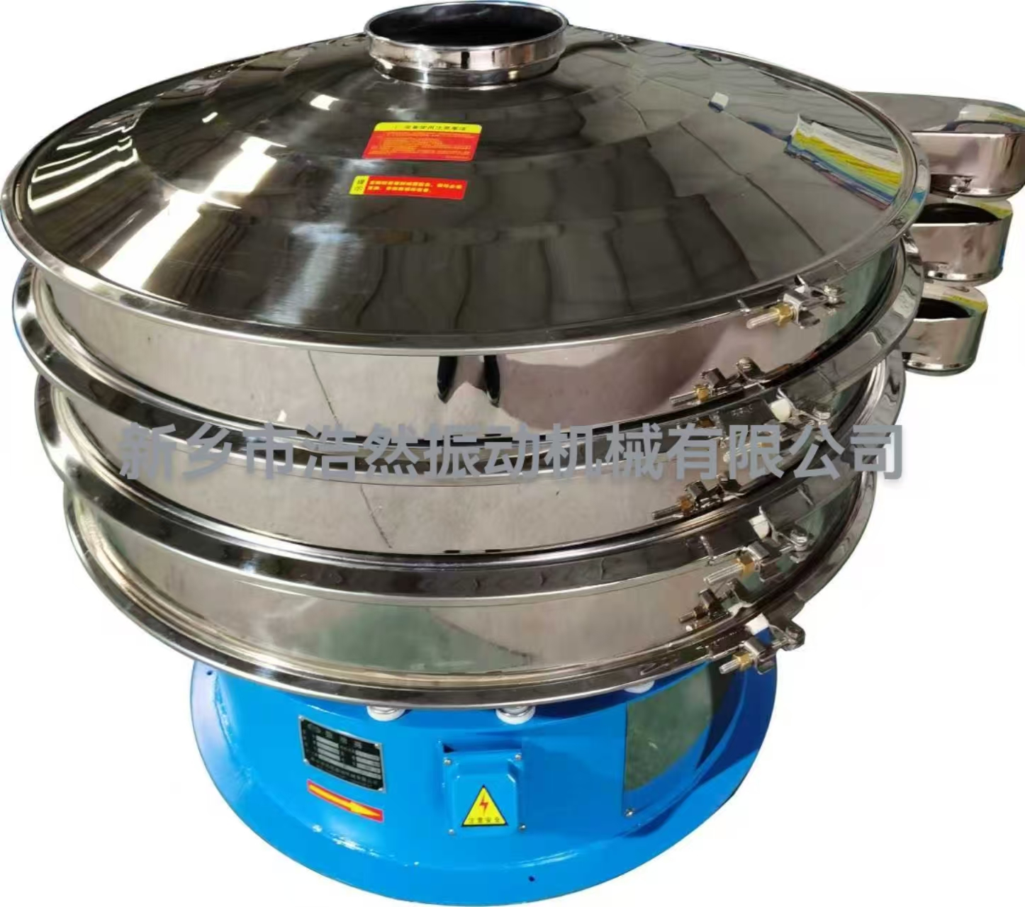 新乡市浩然振动机械有限公司关于:振动筛是一种高精度细粉筛分机械,其噪音低、效率高,快速换网需3-5分钟,全封闭结构,适用于粒、粉、粘液等物料的筛分过滤。旋振筛是由直立式电机作激振源,电机上、下两端安装有偏心重锤,将电机的旋转运动转变为水平、垂直、倾斜的三次元运动,再把这个运动传递给筛面。调节上、下两端的相位角,可以改变物料在筛面上的运动轨迹。    工作原理    旋振筛工作原理三次元旋振筛,由直立式电机作激振源,电机上、下两端安装有偏心重锤,将电机的旋转运动转变为水平、垂直、倾斜的三次元运动,再把这个运动传递给筛面,使物料在筛面上做外扩渐开线运动,故该系列振动筛称之为旋振动筛。旋振筛具有物料运行的轨迹长,筛面利用率高等优点,调节上、下两端重锤的相位角,可改变物料在筛面上的运动轨迹.可以对物料进行精筛分、概率筛分等。 旋振筛起动后,其动力装置即振动电机上下两端不同相位的偏心块、由于高速放置作用而产生一复合惯性力,该惯性力强迫筛机振动体作复旋运动,筛框在振动力的作用下连续作往复运动,进地而带动筛面作周期性振动,从而使筛面上的物料随筛箱一同作定向踊跃式运动,其间,小于筛面孔径的物料通过筛孔落到下层,成为筛下物,大于筛面孔径的物料经连续跳跃运动后从排料口排出,最终完成筛分工作。旋振筛振动体的运动轨迹为一复杂的空间三维曲线,此曲线在水平面上的投影为圆形,在两垂直面上的投影为两相同的椭圆。实际运用中,通过调整振动电机上下两端偏心块的相对相位,可以改变筛面上物料的运动轨迹,从而达到不同的筛分作业目的。    产品特点    1.体积小、重量轻、移动方便、出料口方向可任意调整,粗、细料自动排出,可自动化或人工作业。  2.筛分精度高、效率高,任何粉、粒、粘液类均可使用。  3.筛网不阻塞、粉末不飞扬、筛分最细可达500目(28微米)过滤最细可达5微米。  4.独特网架设计(子母式)、筛网使用长久、换网方便、仅需3—5分钟、操作简单、清洗方便。   5.无机械动作、保养简易、可单层或多层使用、与物料接触部位为用不锈钢制作(医药用除外)。                                                                                                                                                                                                                                                                                                                                          新乡市浩然振动机械有限公司