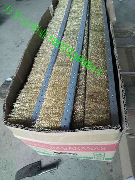 3、黄钢丝条刷:完全由黄钢丝压制出的钢丝条刷,钢带底座厚度为8毫米,总高为80毫米,长度任意。