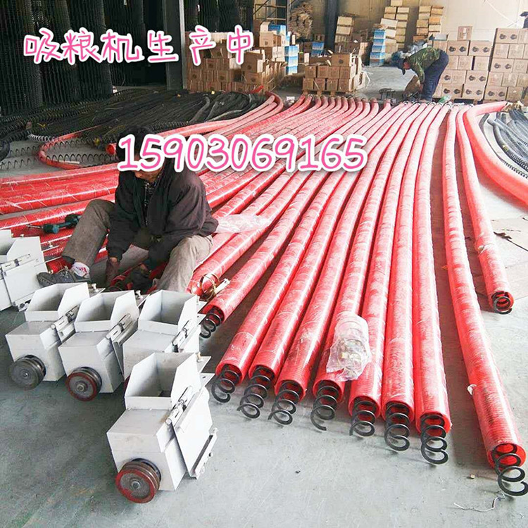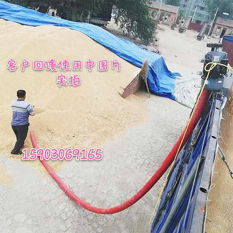 安徽用软管自吸收粮机 电带4到12米绞龙吸粮装车机15到25米输送机是耐磨牛筋管直径为12公分的家用220V照明电即可的自吸式输送提升 装车 倒仓 平仓的的功能机器,长度有4米 6米 8米 10米 12米(可定制15到25米的长距离中驱),中驱输送机是电机在中间两边有管的双驱动自吸机 一般用于长距离的输送