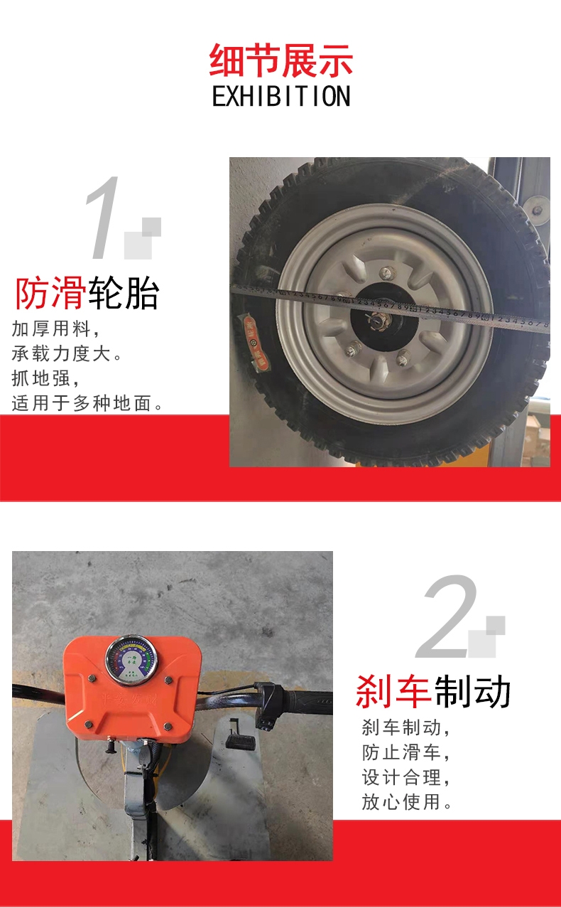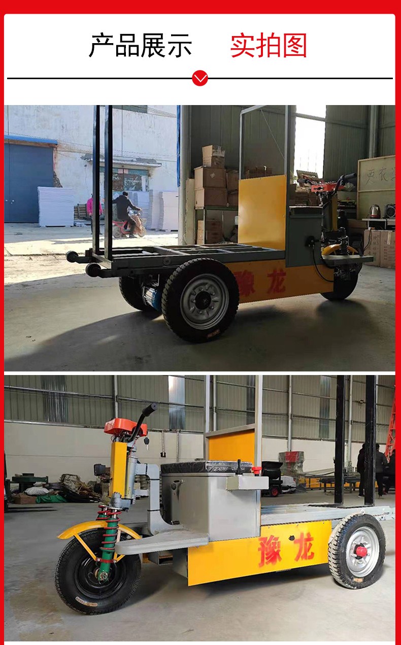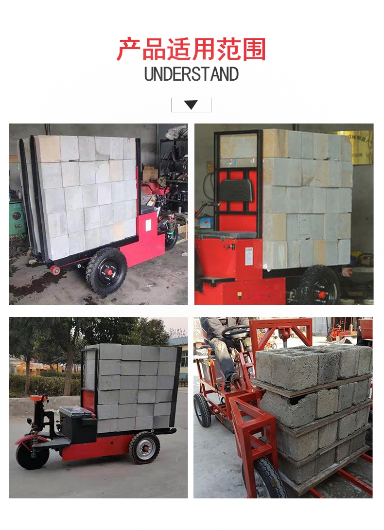 电瓶叉车运砖车全电动设计,操作简单,维修方便。轮胎结构运输平稳,无需预制水泥场。无需码板机,配备专用平台,遥控上车。