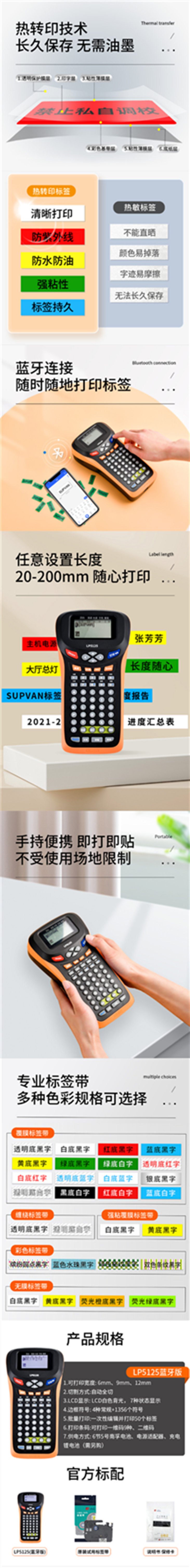 硕方标签机LP5125蓝牙版 手持便携式迷你通信线缆打码机不干胶标签打印机