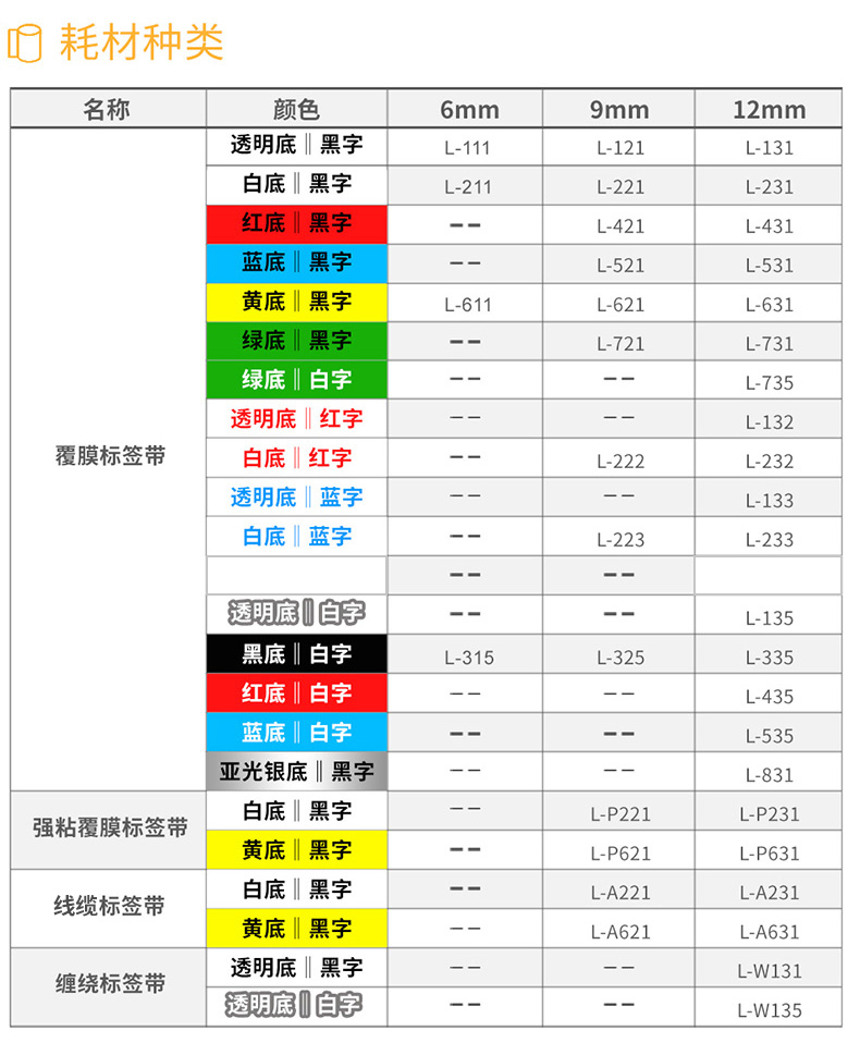 适用场景 | 电线网线标识,文件标识,收纳标识,价格标签 |