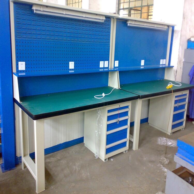 1.工作台使用于学校、车间流水线、钳工操作台、电子厂生产,等多种地方时使用.2.可以配带抽屉,柜子,灯架、挂板架、钳工台等设备配合生产。3.桌面有复合面、防静电面、榉木面、不锈钢面、钢包面等多种可供选择,根据需要的不同搭配不同的桌面。4.在抽屉上可以加配可以移动的分隔板,根据存放工具的大小来调整空间。5.工作台配带的工具柜可以选择是抽屉的、带柜子的,或是两者都有的。6.桌面承重1000Kg,可以根据不同的需求来调整材料,从而保证了承重.