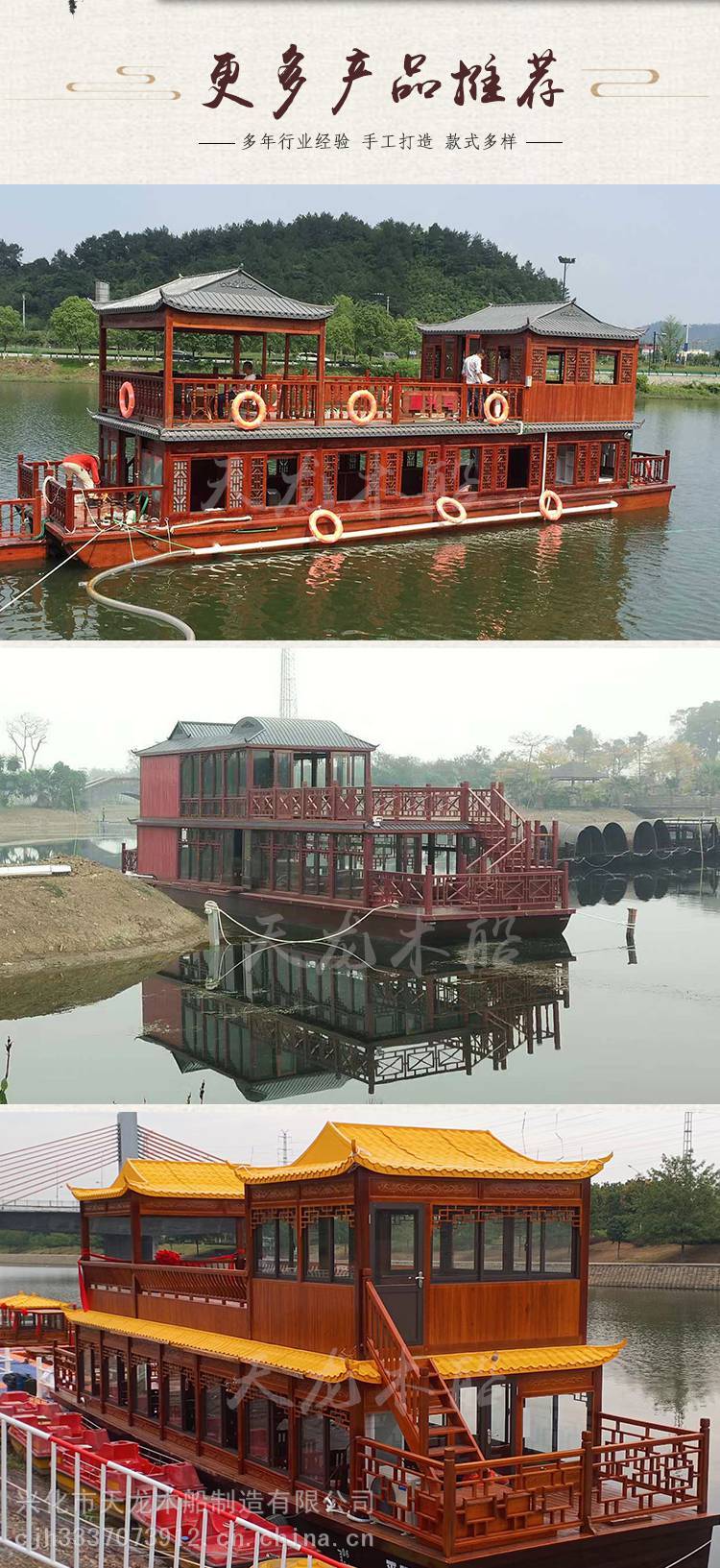 大型仿古画舫船双层餐饮船酒店农庄水上餐厅船定制规格多样