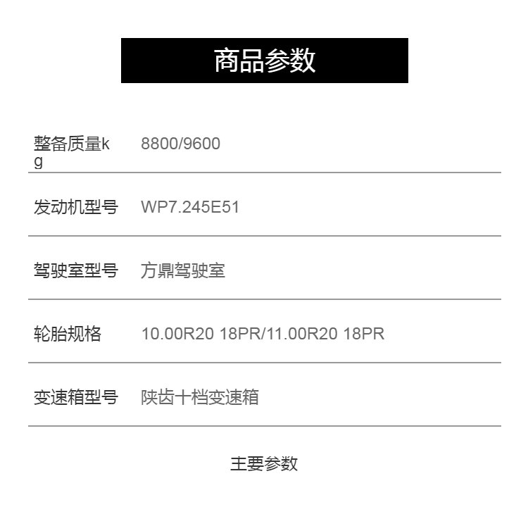 产品参数 | |||