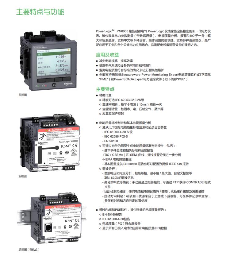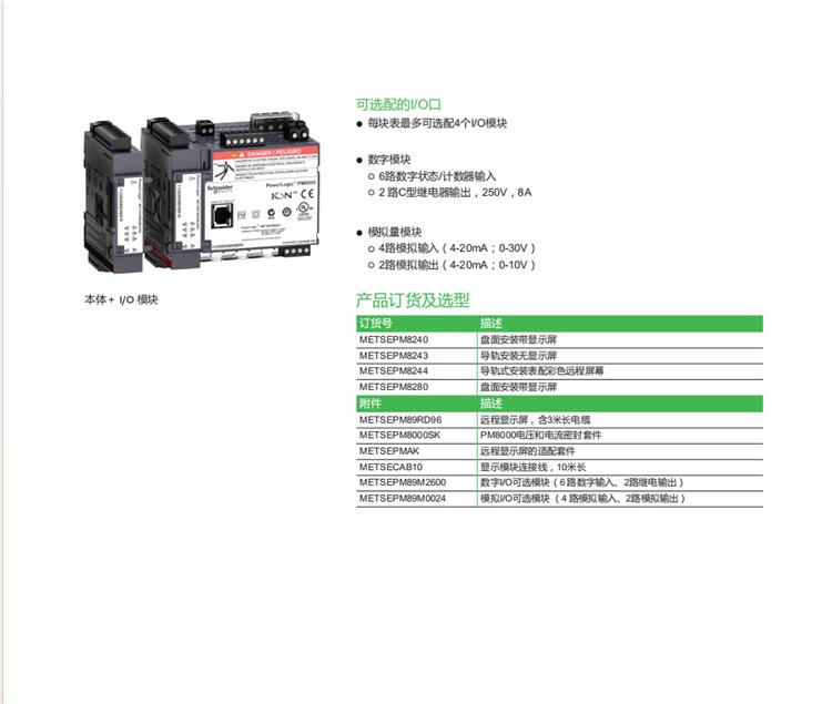 电能质量仪表METSEPM8240进口优势远程数据传输