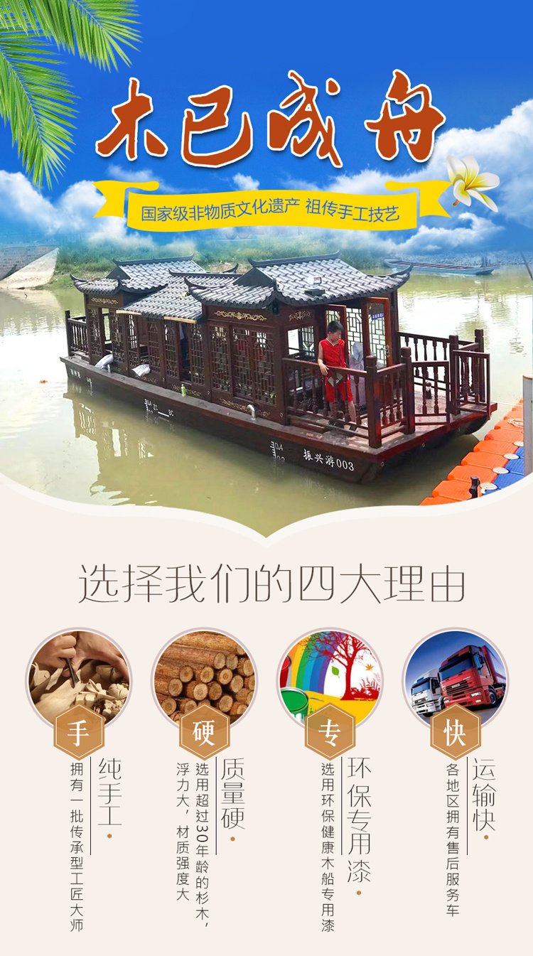 木已成舟牌24人电动游船10.28米木质画舫船竹泓电动观光船厂家木质画舫船